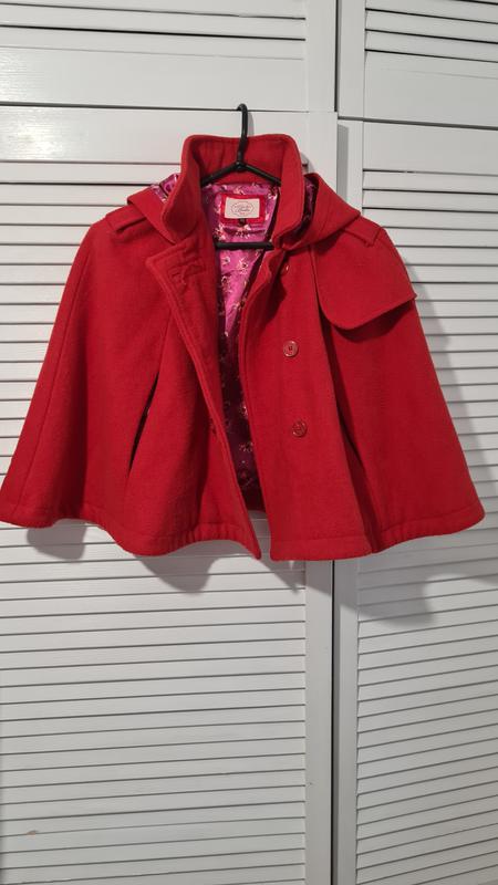 Детский кейп красно-морковного цвета с капюшоном. Тёплое, 50 процентов шерсть. Винтажный кэйп.