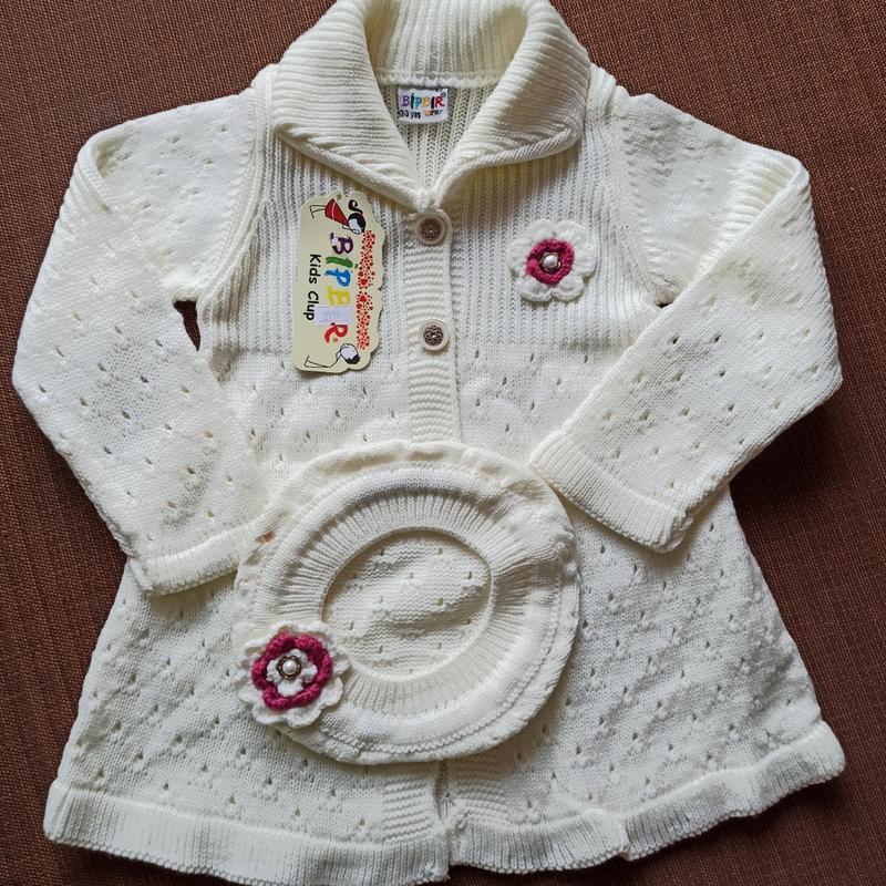 пальто з беретом, для дівчинки, в'язане, виробництво Туреччина, на вік 2-3 роки, довжина 46 см, ПОГ 29 см, расклешонное донизу, рукав-36 см
