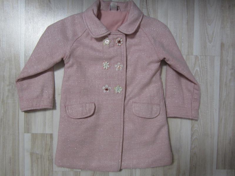 Демі Пальто на кнопках рожевого кольору з ниткою люрекс на вік 3-4г є кишені складу на фото виміри пог-34 довжина-52 рукав від горла-42 гарний стан повернення немає