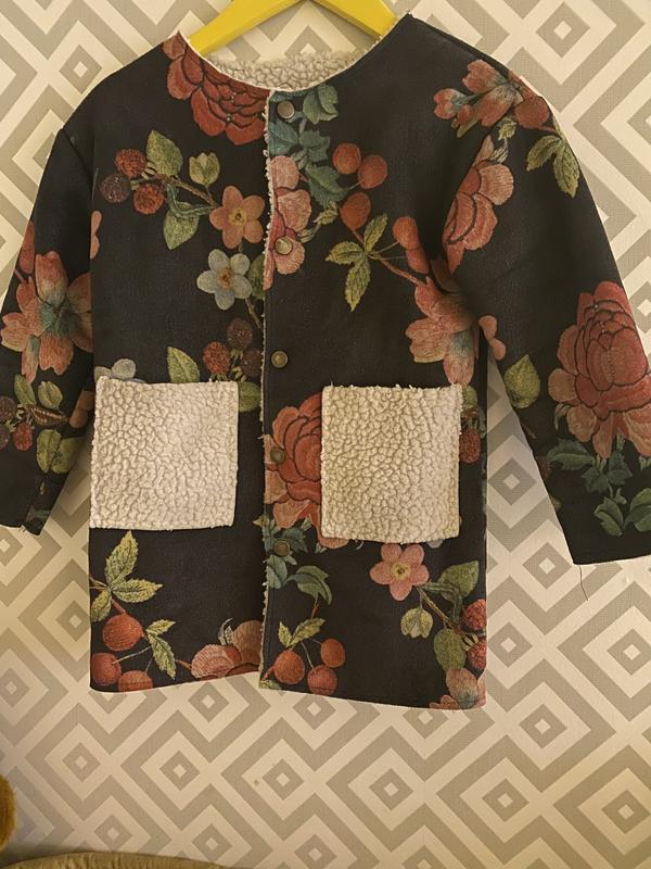 Пальто на осінь легеньке ,але тепленьке На вік 5/6 років Рукавчик можна закатати Заміри: Довжина-55 вся,рукав від горла 48(без підкату)3 підкатом 44(можна регулювати ) обг 38 см