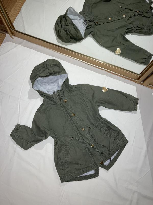 Куртка парка на зріст 92 см. Верхня тканина катон, всередині підкладка, утеплювача немає. Закривається на блискавку і кнопочки. В талії затягується. Стан чудовий, без зауважень. Заміри: довжина 43-46 см, ширина в грудях 35 см, знизу 39 см, рукав 30,5 см, плече 6 см. Класна стильна річ, будете задоволені.