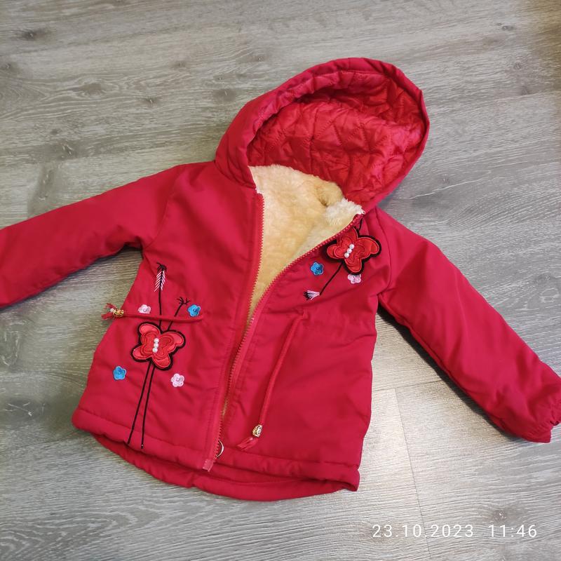 Дуже гарна тепла осіння - весняна курточка для дівчинки. зад трішки подовжений на талії стягується стан ідеальний. є нюанс ( видно на останньому фото) під мишкою трішки порвалося, я шила руками) заміри на фото.