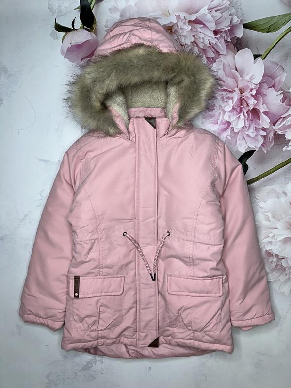 Тёплая парка на зиму с комбинированной подкладкой. В талии утяжка рабочая, капюшон и мех не съемный. Высокий ворот с защитой подбородка. В рукавах есть манжеты. Ткань с водоотталкивающей пропиткой. Новая 🏷️Topolino 🔹7 лет/122 Длина 55/60. Пог 40. Рукав 46