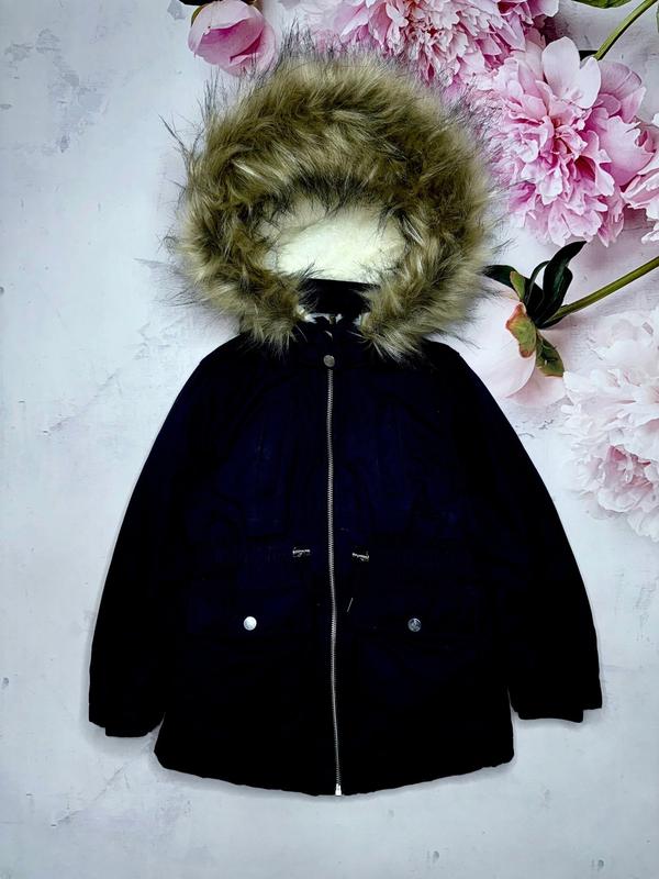 Тепла Демі парку Підкладка махра/стьобанка Капюшон знімний із хутром Високий комір, манжети в рукавах. Стан відвчищий 🏷️H&M 6-7 лет/122 Довжина 54. ПОГ 39. Рукав 45