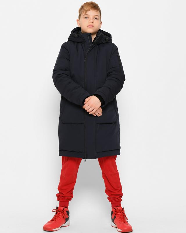 Зимова парка для хлопчиків від 6 до 17 років. Наповнювач синтепух, екологічний і водостійкий, витримує холод до -25 °C. Місткий капюшон і талія з фіксацією на шнур. Це дає змогу залишати тепло всередині куртки та регулювати ширину виробу. Манжети для додаткового захисту від холоду. Три кишені - 2 бічні, 1 на рукаві. Застібка на дві блискавки з вітрозахисною планкою.