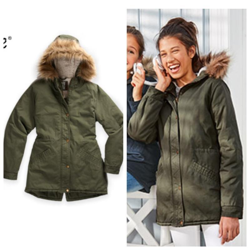 Куртка-парка ТМ Alive(Германия) с капюшоном, мех отстёгивается, капюшон и спинка утеплены меховой подстёжкой, застёжка на молнии+кнопки, рукав на манжете, карманы, на талии вшитый мягкий пояс, р.140, цвет: хаки, состав подкладки: 52% полиакрил, 37% модакрил, 11% полиэстер. Подойдёт на холодную осень-еврозиму. Замеры: ширина плеч-35, ширина подмышек-46, ширина бёдер-49, длина рукава от плеча-50, длина переда-63, длина спинки-68 см.