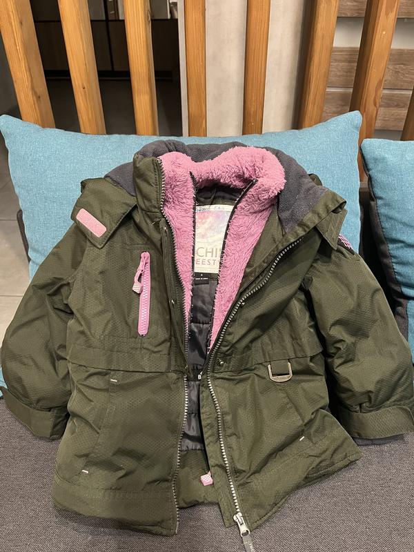Зимова фірмова термо-куртка для дівчинки на вік 3,5-5р (100-110см). Дуже тепла, має 2 замочки, тому зовсім не продувається. На рукавах є флісові манжети з розрізами для пальчиків. Ціна 300грн