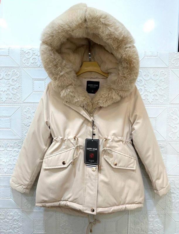 Всередині утеплена хутром Хутро на капішоні та спереду відстібається В поясі затяжки, є зручні вмісткі кармани Чудова якість Розмір: 4, 12, 14 років