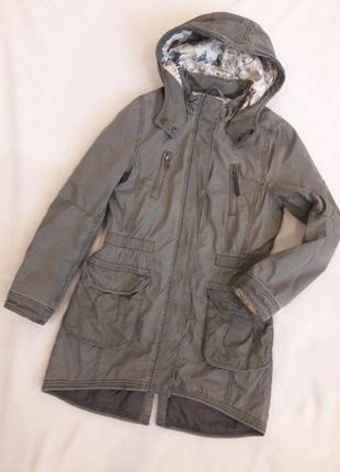 Стильна парку для дівчинки 11/12років кольору хакі . У стані ближчому до ідеального, з дефектів ( останнє фото - потертість на грудях). Пог - 46см. Довжина по спинці - 76см, перед 8см менший. Рукав - 56см. Спинка ( між рукавами) - 36см