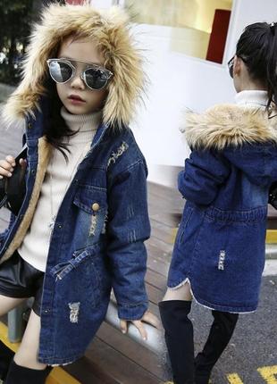 ✅ В НАЛИЧИИ✅ ✍🏻МЕГА крутая джинсовая парка с капюшоном ✍🏻застегивается на металлические кнопки, талия затягивается на веревочках по фигуре ребенка ✍🏻внутри утеплена мехом, рукава на синтепоне, на капюшоне мех не отстегивается ✍🏻смотрится очень стильно ✅РАЗМЕРЫ: 📝110р-1шт 📝120р-3шт 📝130р-5шт 📝140р-5шт 📝150р-5шт 📝160р-5шт ✅ЗАМЕРЫ: 📝110р: длина 52см, ширина 37см, рукав 39см 📝120р: длина 56см, ширина 38см, рукав 41см 📝130р: длина 57см, ширина 40см, рукав 43см 📝140р: длина 62см, ширина 42см, рукав 46см 📝150р: длина 65см, ширина 44см, рукав 50см 📝160р: длина 67см, ширина 46см, рукав 51см Цена 820грн