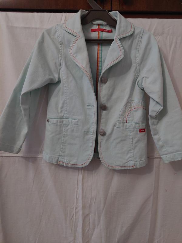 джинсовий піджак ніжно м'ятного кольору з карманами. стан ідеальний. рощмір 4-5років
