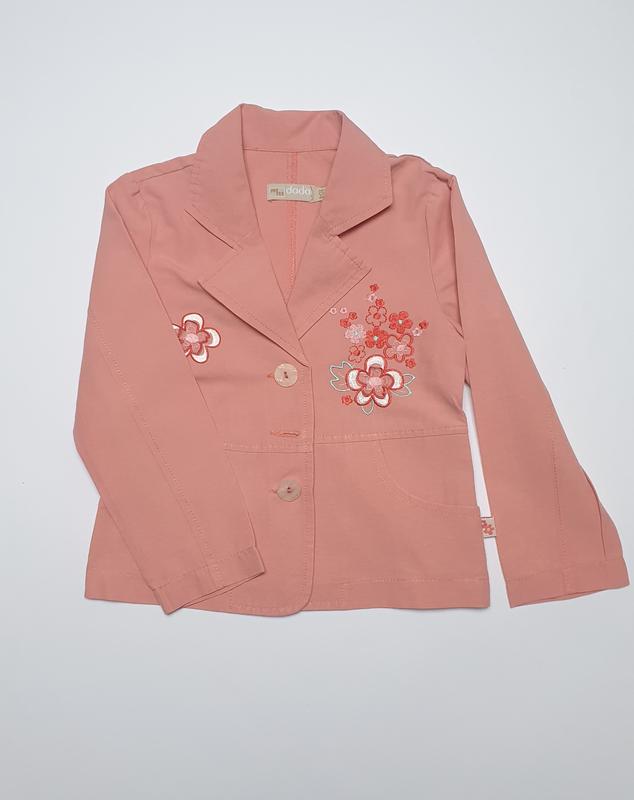 Піджачок для маленької леді фірми mmdada. Розмір 104. Стан ідеальний. Складник: 80% бавовна, 20% поліестер. Заміри: довжина 39 см, рукав-37 см