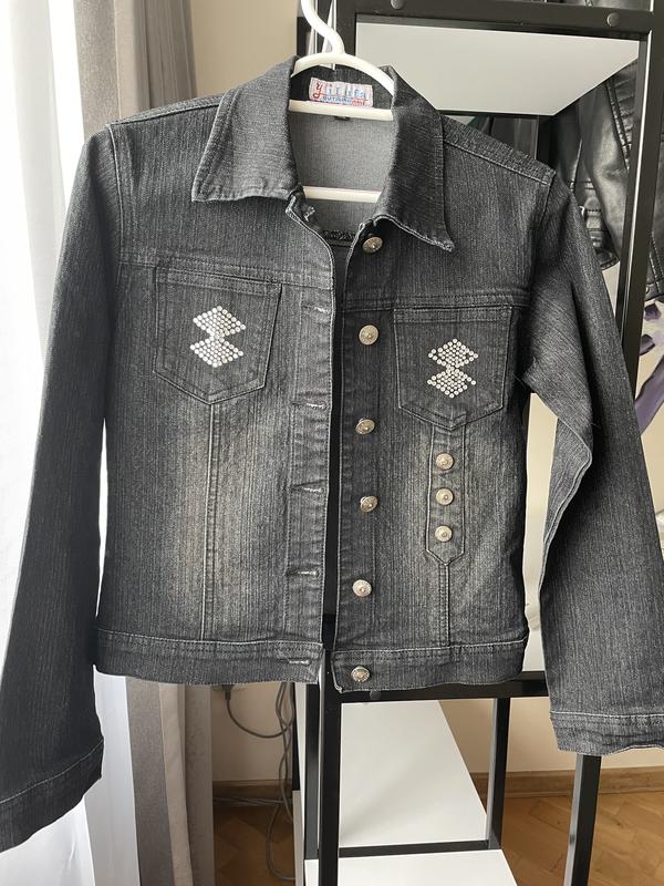 Джинсовий піджак для дівчинки підлітка чорна з потертостями джинсова куртка для дівчинки...
