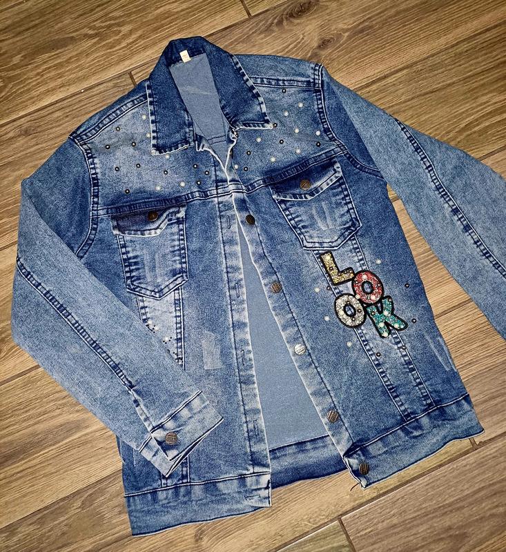 Джинсовая куртка на девочку 8-10 лет,ориентируйтесь на замеры: Длина от плеча 53 см,плечи 34 см, подмышками 39 см,рукав от плеча 47 см Укрпошта Нова пошта