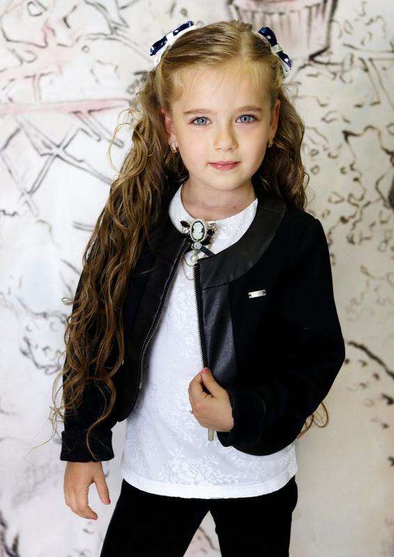 Джинсовий жакет для дівчинки з вініловими вставками. Колір - чорний. Застібається на блискавку. Склад : 97% бавовна 3% еластан