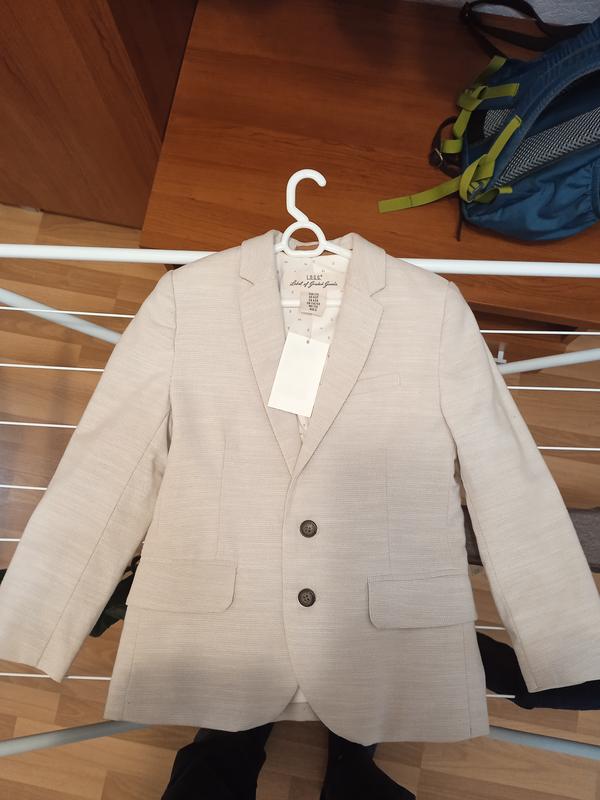піджак дитячий р. 110, на 4-5 років, новий, з білками, в ідеальному стані, молочного кольору. зовні- поліестер, пілклад- котон