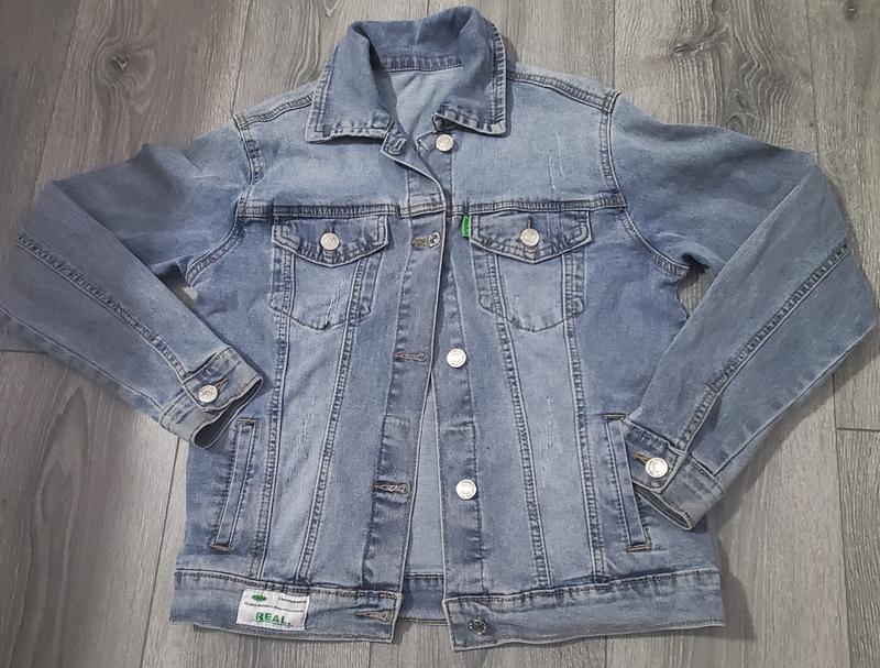 Джинсова курточка для дівчинки, розмір XS, з двох сторін є внутрішні кармани. Довжина 54 см, ширина 45 см, довжина рукава 52 см.