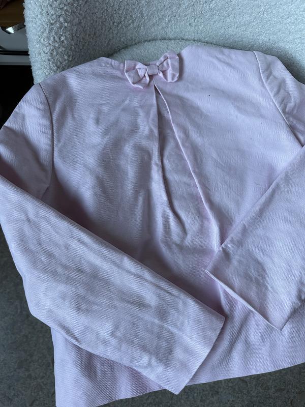 Оригінал, купували на свято Стан нової речі Плечі 30 см , довжина від плеча 44 см , рукав 47.5 см , по лінії грудей 39 см Як на мене ідеально на 7-8 років Є кишені , ніжно рожевий колір