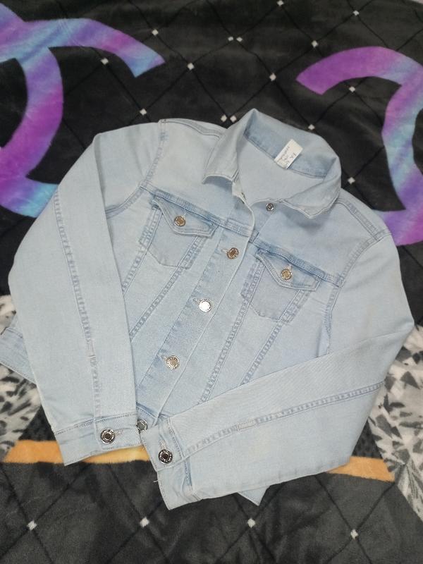 Продам джинсовый пиджак. Размер написан 9/10 лет на рост 140. Замеры длина 42 см длина рукава 50 см плечо 10 см ширина полуобхват под мышками 35 см