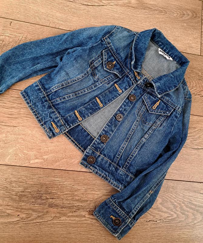Джинсовий піджачок на гудзиках є малюночок на спинці. Довжина рукава від плеча-43 см Довжина по спинці-37см Ширина під руками-35см.