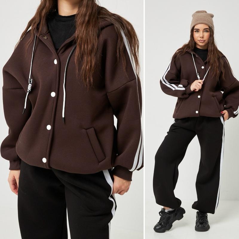 Бомбер оверсайз Підійде під будь-який образ, на кнопках, є капюшон, тканина трьохнитка на флісі. ЯКІСТЬ ЧУДОВА! довжина/пог/рукав від горловини 140-146/56/55/56 146-152/58/56/59 152-158/60/57/62 кід