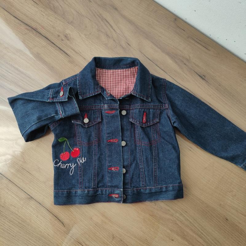 Джинсовий жакет для дівчинки 2-3 роки. Виготовлений з джинсу м'якого. Прикрашений вишивкою. Заміри на фото з біркою.