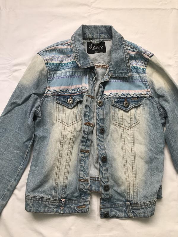Піджак джинсовий підлітковий з декоративною вставкою. У відмінному стані. Розмір - M