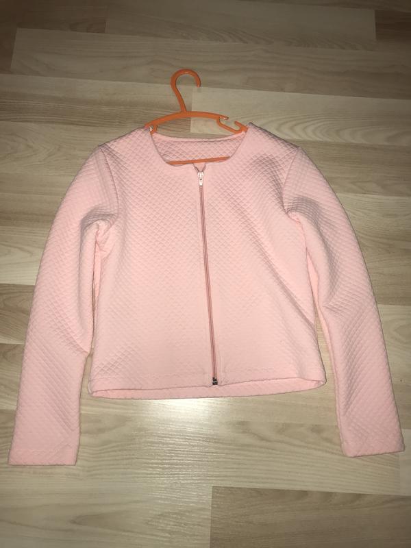 Ніжний рожевий піджак, жакет болеро кофта на блискавці, зростання 146-155