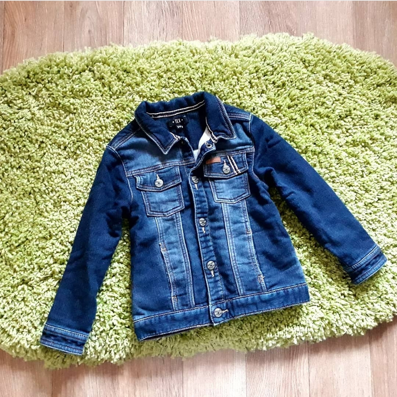 Отличная качественная стрейчевая джинсовая куртка. Состояние идеальное. Тянется очень хорошо, лёгкая и удобная. Застегивается на кнопки. Размер 5-6 лет на рост 116 см. Замеры: Длина 42 Ширина 36 Рукав от плеча 40 Плечи 30