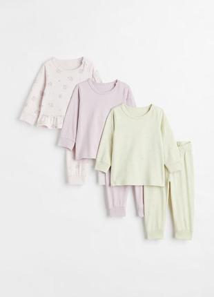 Комплект пижам H&M. Размер 2-3 года (98), Цвет нежно розовый, фисташковый, сиреневый. Размер 3-4 года (104), Цвет сиреневый. Состав: 100% хлопок. 950 грн. за комплект Поштучно 330 грн. за од.