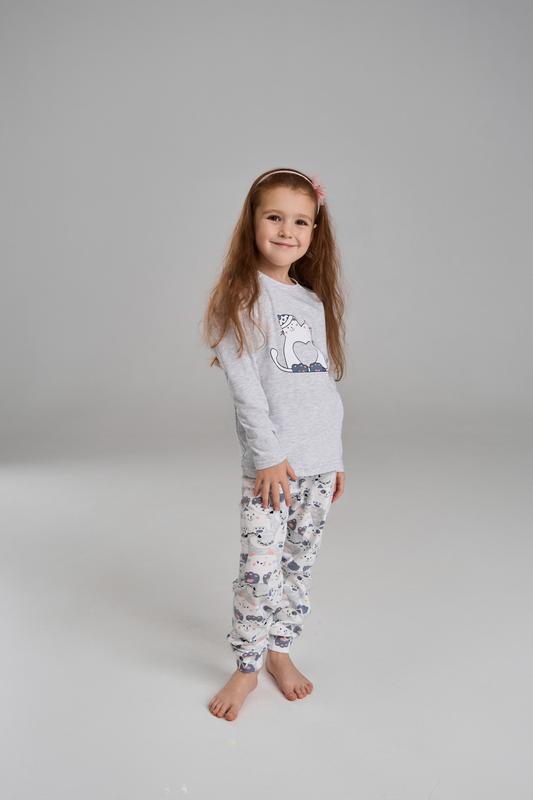Комплект на дівчинку сірий зі штанцями - принт котики