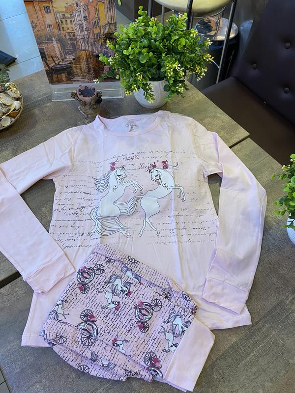 Пижама на рост реальный на 140,возраст 10 лет,есть в двух цветах розовый и бирюза.