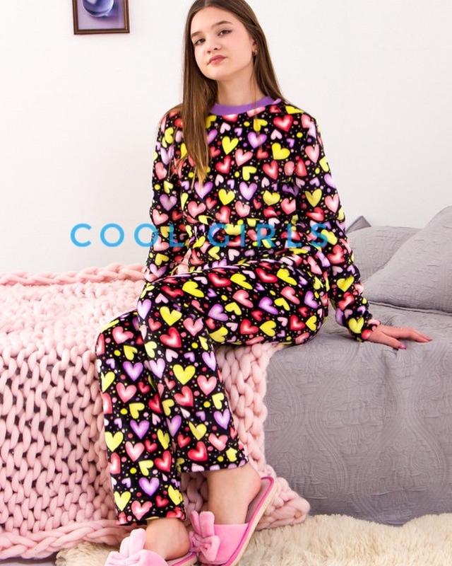 Яскрава тепленька піжамка для дівчаток в різнокольорові сердечка!!! Тканина велсофт-махра дуже м‘якенька та тепла. Якість та пошиття відмінне. Рекомендую❗️ Якість дуже класна! Доступні розміра: 💨 140р.-560 грн. Довжина 55 см, півобхват грудей 41 см, рукав 51 см, довжина штанів 90 см. 💨 146р.-580 грн. Довжина 59 см, півобхват грудей 43 см, рукав 54 см, довжина штанів 92 см. 💨 152р.-615 грн. Довжина кофти 60 см, півобхват грудей 44 см, рукав 56 см, довжина штанів 94 см. 💨 158р.-640 грн. Довжина кофти 64 см, півобхват грудей 46 см, рукав 60 см, довжина штанів 99 см. 💨 164.-675 грн. Довжина кофти 66 см, півобхват грудей 47 см, рукав 60 см, довжина штанів 103 см. 💨 170.-695 грн. Довжина кофти 67 см, півобхват грудей 48 см, рукав 64 см, довжина штанів 106 см.
