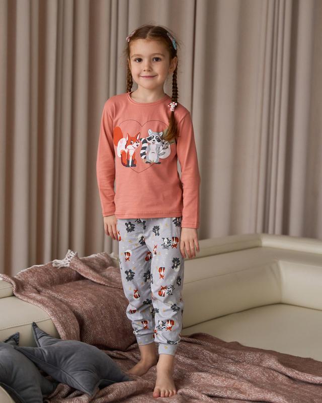 Піжама зі штанами на дівчинку - лисеня та єнот - family look мама/донька
