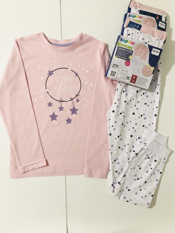 Піжамка 🌷🌷🌷 Для дівчинки Малюнок світиться в темряві Кофточка з довгим рукавом та штанці з манжетами Бавовняна Розміри: 98/104 см (3-4 р ) 110/116 см (5-6 р ) 289 грн 🍃🍃🍃