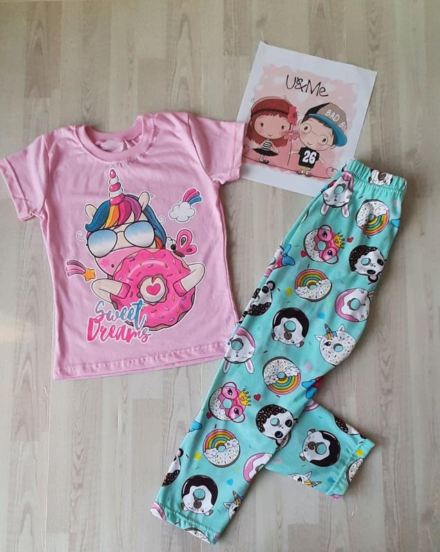Пижама лосины и футболка для девочки отличное качество, натуралная ткань(кулир/кулир пенье) яркий дизайн понравится каждой девочке ткань тянется футболка белая, лосинки молочные размер/длина футб/пог//длина лосины/бедра (64)104-110р/43/31//63/35 (68)110-116р/46/33//70/38 (72)122-128р/49/34//73/39 +-2см