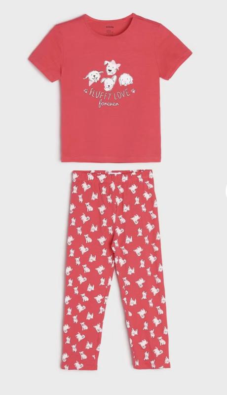 Пижамный комплект из двух предметов изготовлен из трикотажа с высоким содержанием хлопка. футболка с коротким рукавом брюки с эластичным поясом декоративный принт Размер 122 см На 7 лет