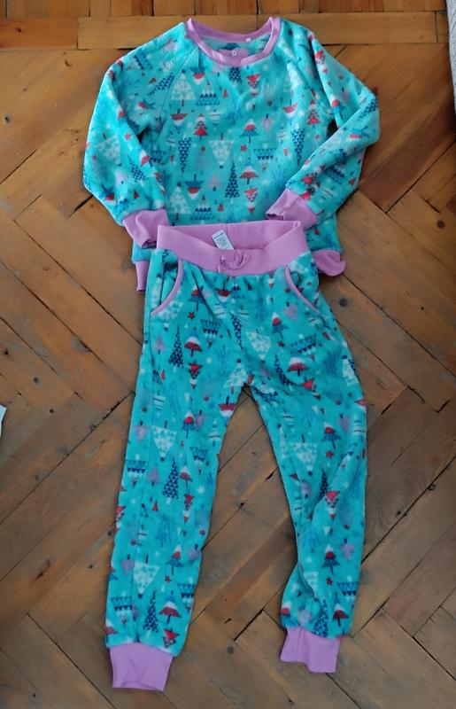 Махровая теплая пижама, состояние - мелкие катышки на манжетах. Кофта -рукав от воротника 48см, длинна 45см, ширина 32см, штаны- длинна 70см, шаг 48см пояс 26 см.