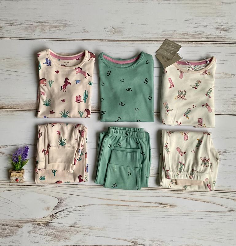 Піжами з чистої бавовни від британського бренду John Lewis чудової якості. Звичайний крій, зручний верх із довгими рукавами та штанці з манжетами. Прикрашена цікавим принтом. Придбавши дитячу піжаму цього бренду, ви повернетесь обовʼязково ще, тому що бавовна в них найкраща. Речі після прання не втрачають кольору та форми.