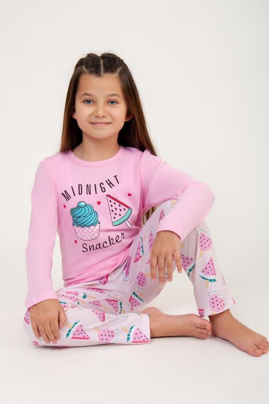Легкая удобная пижама для девочек из однотонного и принтованного кулира. Модель свободного кроя, состоит из джемпера с длинными рукавами, округлой горловиной, а также брюк на эластичной тесьме. Благодаря натуральному составу полотна (100% хлопок) эта пижама станет любимой вещью в домашнем гардеробе девочек. Полотно: кулир. Состав: 100% хлопок. Рекомендации по уходу: стирать при температуре не более 30°C. Допускается стирка в режиме "ручная" или "деликатный", принт гладить только по изнаночной стороне.