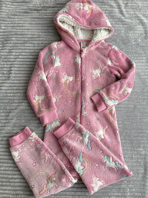 Дуже теплий сліп, комбінезон, піжама на дівчинку. Тканина неймовірно приємна на дотик, м’яка, ніжна та тепла. В цій піжамі донька нагадувала мені плюшевого ведмедика чи єдинорога) Стан ідеальний, без дефектів. Розмір вказано 8-9 років Довжина 106,5см Рукав 44см Довжина від плеча до паха 64см