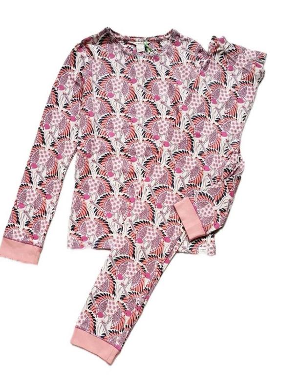 Піжама, комплект для дому на дівчинку бренду White Stuff. Складається з реглана і штанів. Реглан з довгим рукавом, круглий виріз горловини, манжети на рукавах. Штани знизу з манжетами, в поясі зручна гумка без зав'язок. Комфорт під час носіння завдяки високій частці бавовни. Оптимальна посадка завдяки еластану. Матеріал високої якості. Заміри: На зріст 134-140см вік 9-10 років: Реглан: ПОГ-38 см, довжина рукава-53 см, довжина по спині-52 см; штани: на гумці-30 см, напівобхват по стегнах-33 см, довжина/крок-82/61 см. Склад 96% бавовна, 4% еластан