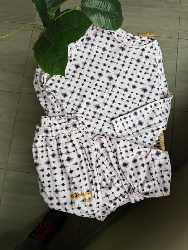 Піжама на 11 років Стан ближче до нового 195 грн Заміри Кофтинка Довжина 51 см Довжина рукава від шиї 55 см Пог 48 см Штанці Довжина 87,5 см Крок 61 см Пот 30 см