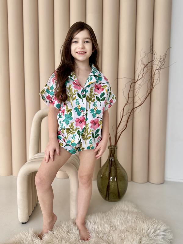 Дитяча піжама з коротким рукавом та шортами з квітковим принтом