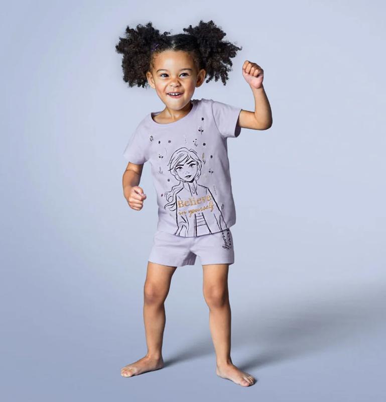 Дитяча літня піжама на дівчинку . Комплект для сну із футболкою та шорти з м´якого бавовняного трикотажу. Шорти з еластичною гумкою на талії. Frozen р.86-92 - 12-24 місяці: довжина футболки 37, ширина грудей (ПОГ) 28, довжина шорт 21, ширина талії 22 (По футболці є кнопки ) Повернення та обміну на піжами немає!