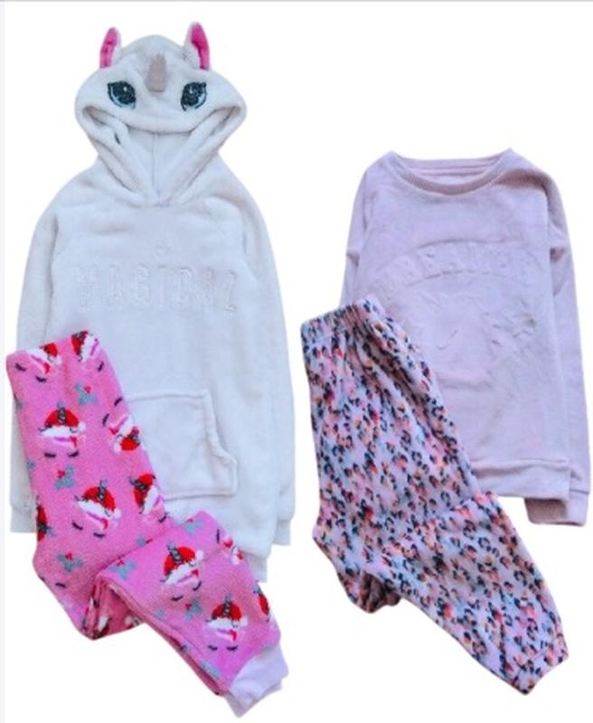 6-7 р, 122 зр next флісова пухнаста піжама з однорогом, реглан, худі та штаніки з принтом....