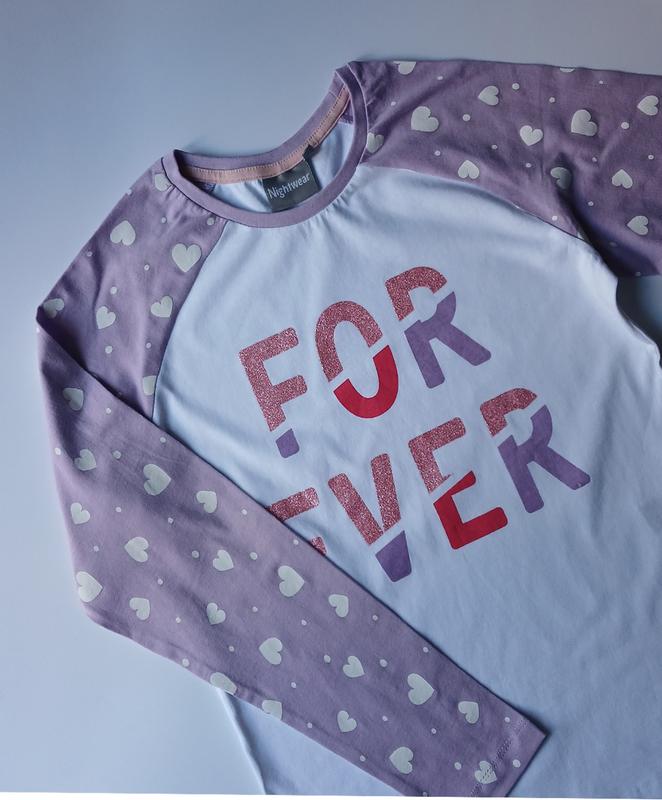 Размер на этикетке: 146-152 см (10-12 лет). Верх из пижамного комплекта изготовлен из трикотажа высокого качества, мягкий и приятный на ощупь. Силуэт: свободный, прямой, закругленная спинка длиннее передней части. Состав: 100% хлопок. Произведено: Бангладеш. Замеры (возможно +/- 1 см): длина (передняя-задняя часть) 57-59 см, ширина (грудь-бедра) 42-42 см, длина плечо + рукав (от горловины) 65 см. - - - - - - - - - - - - - - - - - Внимание! Пижамный комплект разделен для удобства покупателя (верх и низ продается отдельно), поэтому бумажная этикетка на одной части пижамы может отсутствовать.