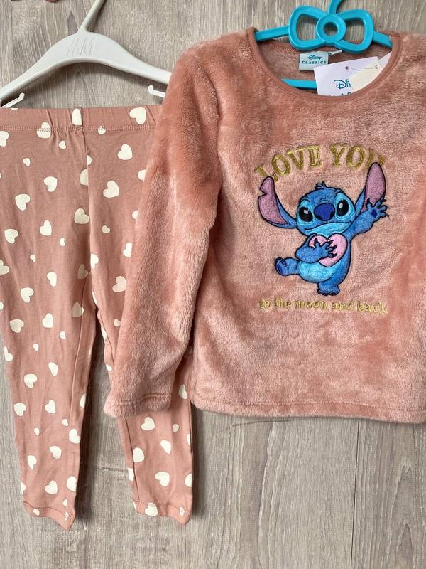 Тепла персикова піжама Stich для дівчинки 3р Кофтина махрова, лосінки котонові .