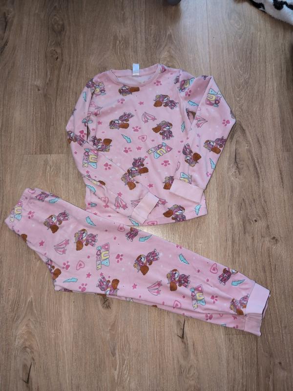 Піжама тепла , двосторонній начес, але не товстий. Стан нормальний, є на манжеті дефект, невелика дірочка, я на фото вказала.