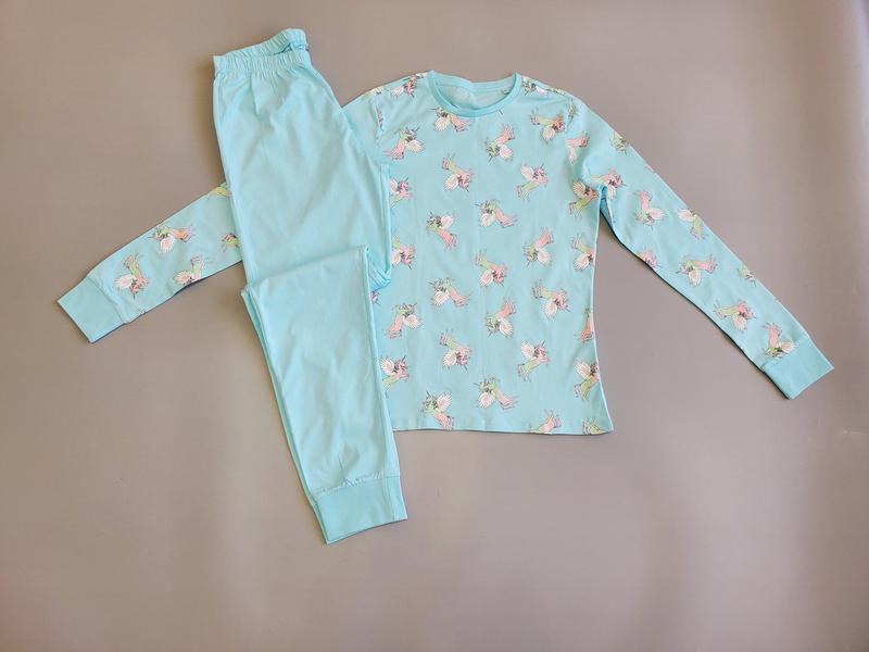 Tрикотажнa піжамa для дівчинки У блакитних і сірих тонах з красивим малюнком. Кофтинкa не широкa з довгим рукавом, штанці прямого крою на поясі з резинкою, внизу на резинці манжеті. Мякий трикотаж, відмінна якість! Розмір — 152 Розмір — 164 1) Кофта ПОГ-43, рукав-61, довжина-61 Кофта ПОГ-43, рукав-61, довжина-62 2) Штани ПОТ-31, довжина-97, вн.шов-76 Штани ПОТ-31, довжина-98, вн.шов-74 Ціна-500 грн
